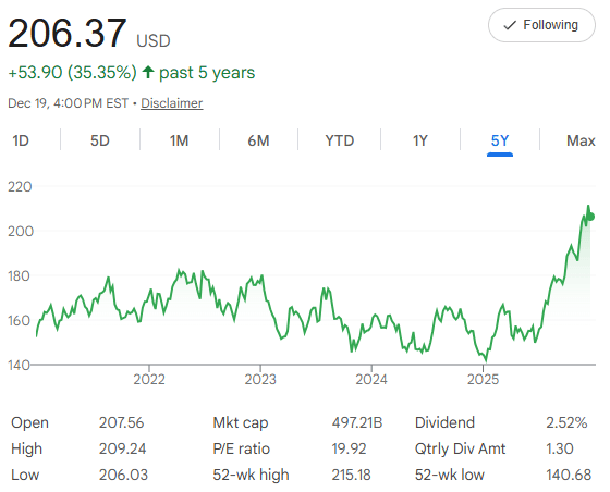 Valued around $300 billion, UnitedHealth has been pressured by Medicare reimbursement cuts, elevated utilization, and margin compression within Optum. The stock declined sharply, at one point trading near $240, reflecting fears of sustained profitability erosion.